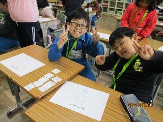 3年生も外国語活動の時間です。「What’s this?」と聞いては答え、答えては聞き、