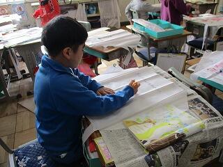 思い出をもとにどんな絵を描くのか考え、実際に作成していました。