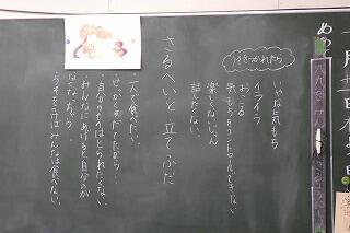 明日は校内席書会があります。3~6年生は書き初めの用意が必要ですので、ご家庭でも声かけをお願いします。