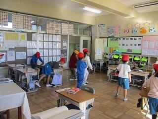 今日から平常日課に戻り 、給食や掃除なども再開しました。