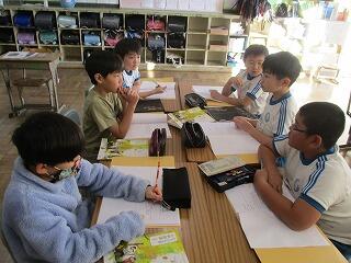 チームで調べること、役割分担、発表の仕方について、班で話し合いました。