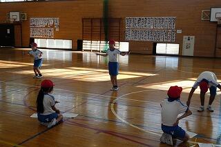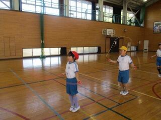4年生の体育は、リズム縄跳び。今日はいよいよ発表会をしました。