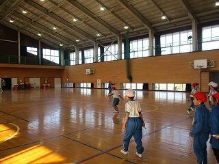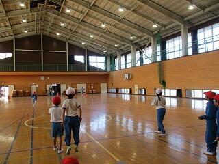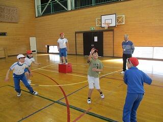 体育館ではドッジボール。相手にあわせて思いっきり投げたり、力を加減したり、学年まざって遊ぶと相手を思う力が磨かれていきます。