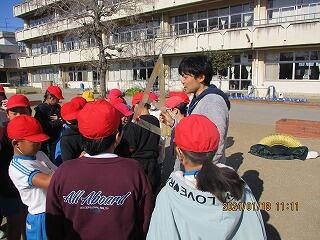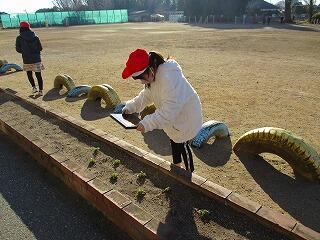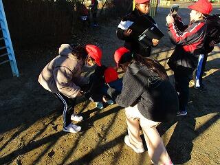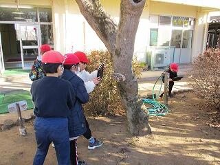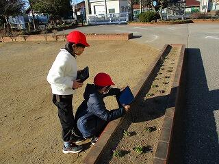 4年生は、冬の動物と植物の様子について調べるため、校庭に出て観察していました。