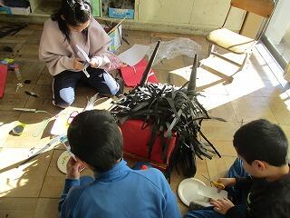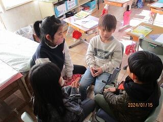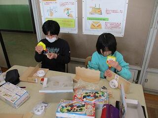 2年生になってこれまでに作ってきたいろいろなおもちゃについて、同じ物を作った仲間と相談して思い出し、