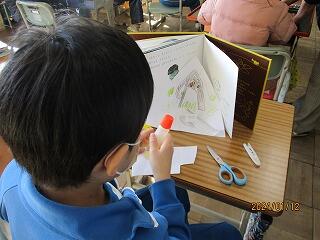 ゆりの木組では、本の中から好きな場面を選んで紙で立体的な絵ができるよう作製していました。