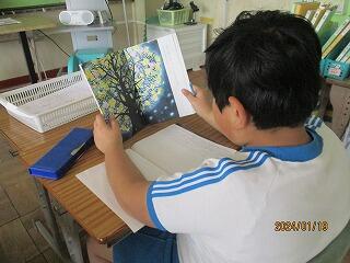 ゆりの木組では、「ぼく・私の好きな場面」と題して、作成した作品をみんなで鑑賞しました。