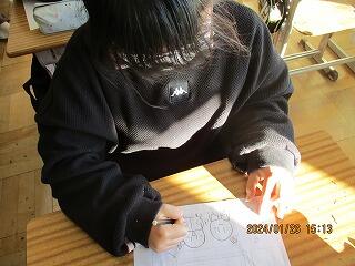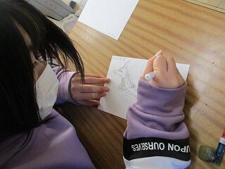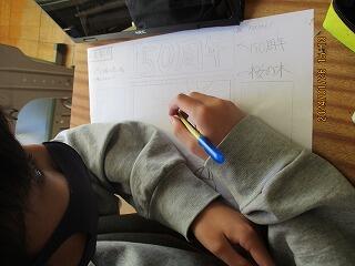 思い出をもとにどんな絵を描くのか考え、実際に作成していました。