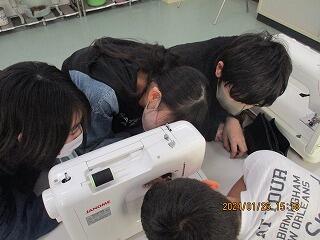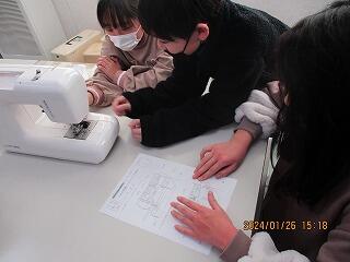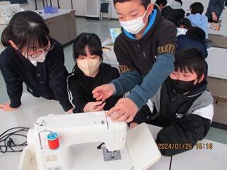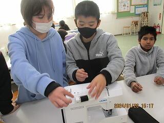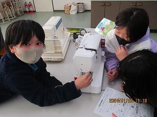 5年生の家庭科では、初めてのミシン縫いの学習。