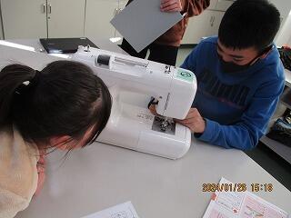 スムーズにミシンに糸をかけ、準備が早くなるように何回も練習しました。