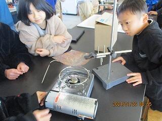 4年生の理科では、金属はどのように温まるのかについて実験をしました。
