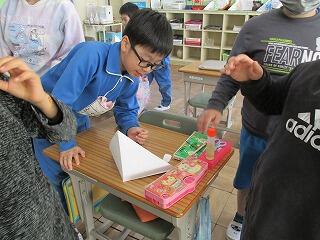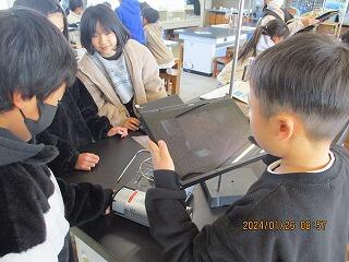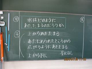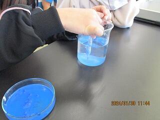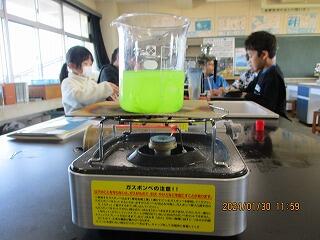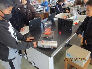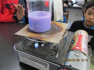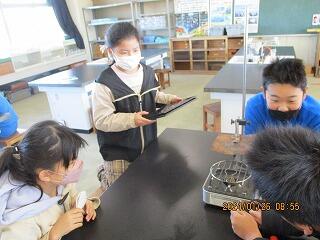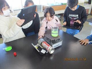 4年生は理科の時間。水の中に特殊なインクを入れて、温めたときにどのような変化が見られるのか実験をしました。