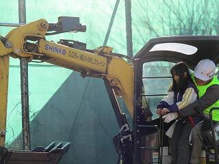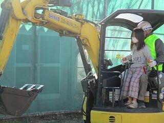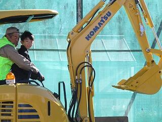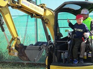 キャタピラの振動と迫力に、子どもたちは夢中になっていました!