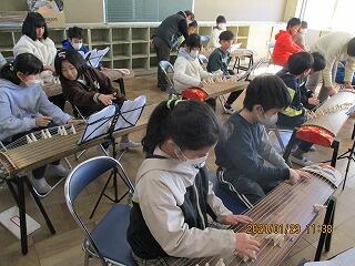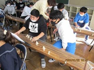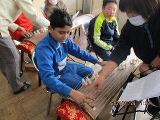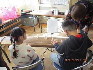 今日は、琴奏者の講師の先生をお招きして、お琴体験を4~6年生が行いました。