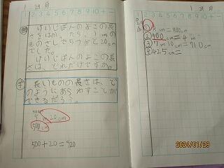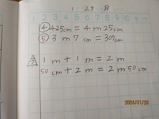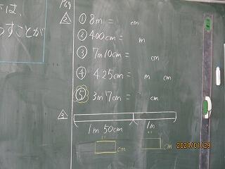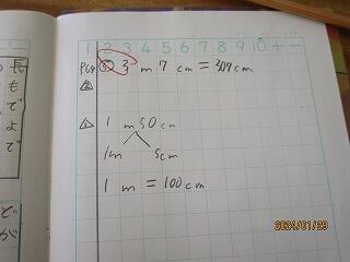 m→㎝、㎝→mに直したり、計算問題に取り組んだりしました。