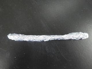 次は酸素が無い状態で燃やしてみました。木をアルミホイルで包み、火にかけます。