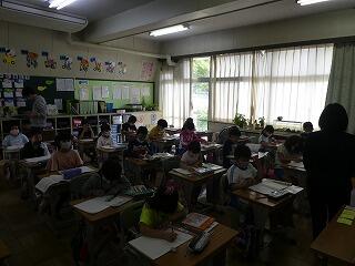 通常ならば体育館で行う「1年生を祝う会」とあわせて行う学習ですが、感染症対策のために集まることができません。