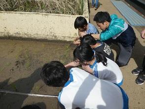 5月9日(木)晴天の下、地域の逆井さんや和田さんなどを講師に迎え、5年生が校内の田んぼで田植えを行いました。初めて苗を持つ子どももおり、最初はおそるおそる植えていました。最後にはこつをつかむ子どもも出てきました。貴重な体験をさせていただき講師の先生方には感謝申し上げます。