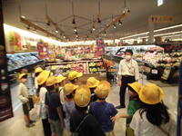3年生がスーパーマーケットの見学をさせていただきました。売り場だけではなく、普段は入ることができないバックヤードも見せていただきました。新しい発見がたくさんあったと思います。子ども達の質問にも丁寧に答えていただき、本当にありがとうございました。