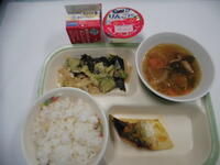 今日の給食は、発芽玄米入りご飯、牛乳、鯖もみじ味噌焼き、こんにゃく海藻サラダ、白玉汁、りんごゼリー でした。ごちそうさまでした。