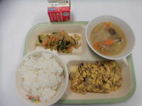 今日は前期最後の給食でした。メニューは、ご飯、牛乳、他人丼の具、切り干し大根の胡麻酢和え、サツマイモの味噌汁 でした。ごちそうさまでした。後期は初日(10月14日)から給食があります。後期もよろしくお願いいたします。