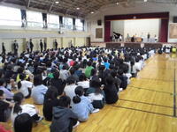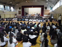 10月30日(木)に、本校が出場する市内音楽会があります。始業式の後に、全校で発表曲を聴き、音楽部を応援しました。音楽部の皆さん、当日も練習の成果を発揮して、頑張ってきてください!!