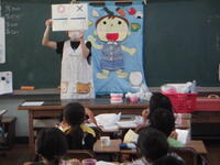 保健センターから講師を招いて、1年生が歯みがきについて教えていただきました。歯も私たちの身体の一部として、とても大切な役割をしています。正しい磨き方をして、自分の歯を大切にしましょう。