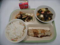 今日の給食は、ご飯、牛乳、鶏肉の唐揚げ、小松菜のおひたし、沢煮椀、韓国のり でした。ごちそうさまでした。
