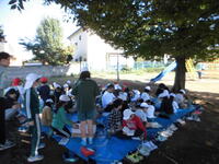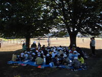図書委員会の企画により、「秋のゆっくり読書会」が昼休みに行われています。校庭のおおきなけやきの木の下で、ブルーシートを敷き、のんびりと読書に親しんでいます。今日は天気も良く、とても気持ちよさそうに読書に親しんでいました。