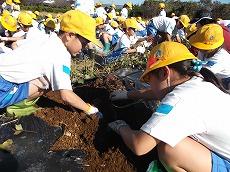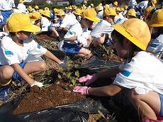 今日は,2年生が1年生を招待して,一緒にサツマイモ掘りに出かけました。