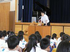 元気よく校歌を歌った後,春休みの生活で気をつけたいことを担当の先生が話しました。