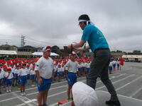 2組は、はじめに整列の仕方を確認していました。体育係が前に立ち、きれいに整列できていました。