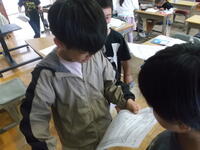 友達の発表に、手を止めてうなずきながら聞いている子もいます。