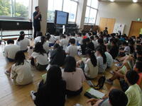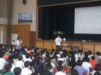 全校で実施し、異学年が交流することができた運動会など、様々な行事の中で成長がみられたことや後期に向けて、地元の歴史に興味を持ち、学習していくことの大切さについてお話がありました。