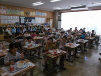 食事係さんが手際良く、配膳しています。日頃の給食指導が生きていますね。