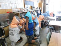 委員会活動初日。5年生の保健委員会の皆さんが、各クラスの石けんの残量を確認してくれています。