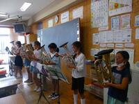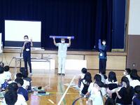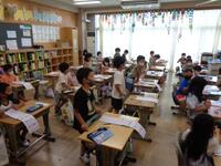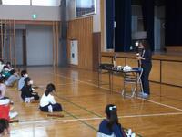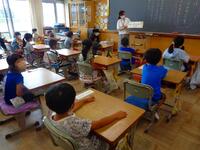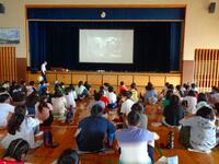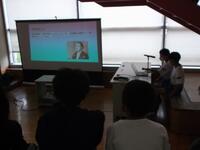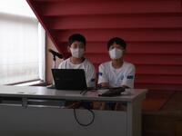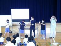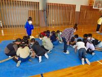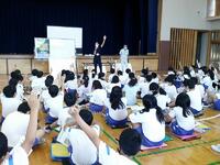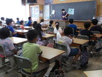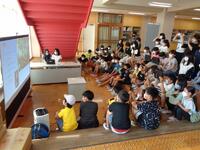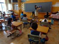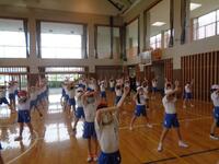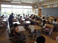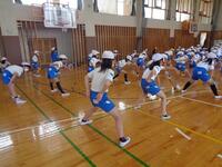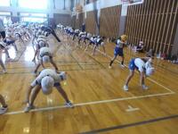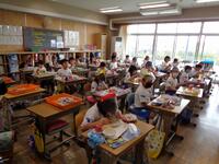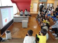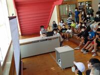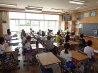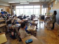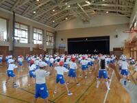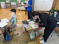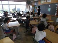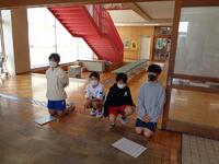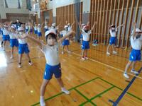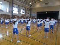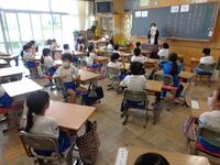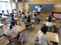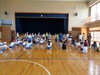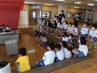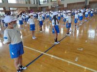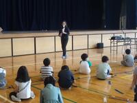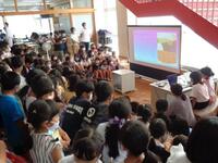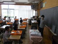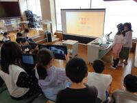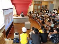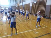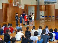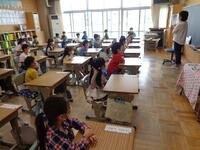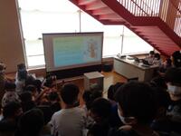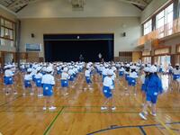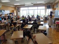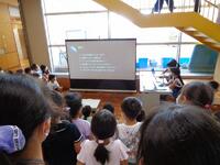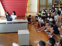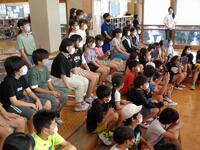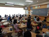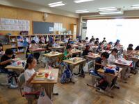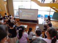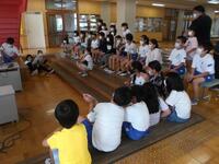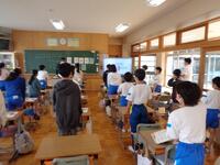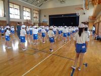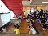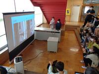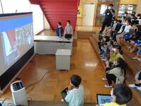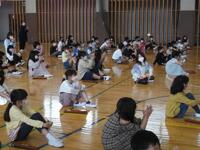 1〜3年生はオンラインで、4〜6年生は体育館に移動しました。