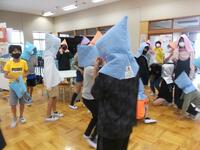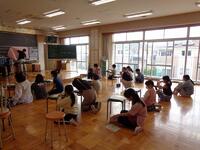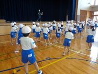 2年生の音楽では、輪になったり、歩いたり、ダンスをしていました。
