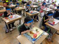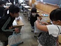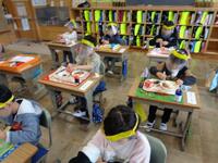 先日のホームページの記事でお伝えしたとおり、長期休業明けであることから、給食時のフェイスシールドの着用をお願いしています。保健所の指導も踏まえ、濃厚接触者になってしまうことを防止するために行っています。