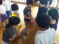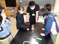 物を燃やし続けるにはどうしたらよいか、グループで実験していました。