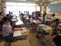 3年生は、谷川俊太郎さんの「かえるのぴょん」の詩をグループで音読していました。