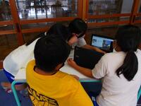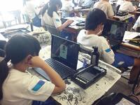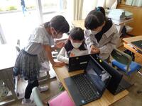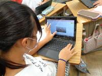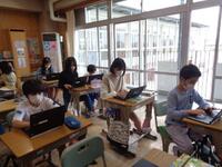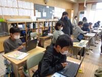 6年生は、図工の絵を描くのに、クロームブックでお気に入りの場所を選んでいます。