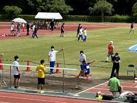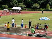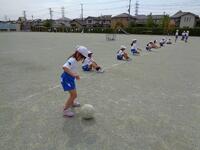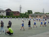 踏み切り板までの距離を測ったり、カニ歩きや大股歩きをしたりと様々な練習をしていました。