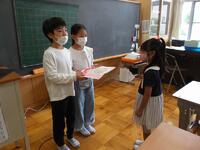 委員会活動が始まっています。日の当たるところにプランターを移動してあげて水をあげる子、給食の片付けをがんばる子、みんながんばっていました。