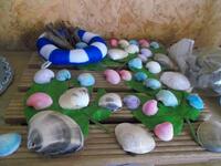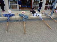 図工の授業で、ビニールの中に色紙を入れたり、シールを貼ったりして、可愛い怪獣やお人形がたくさん!