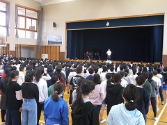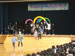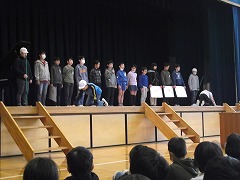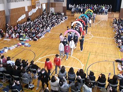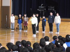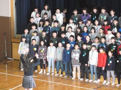祝う会の最後には,全校合唱で体育館が一つになりました。