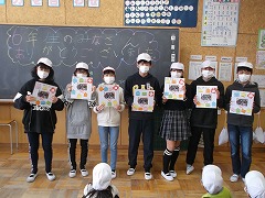 この日のために,5年生が中心となって,グループの集合写真と在校生からのメッセージが入った色紙を作り,