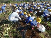 畑に入りお世話になる方に挨拶して説明を聞き芋を掘り始めるとあちらこちらから「でっかい!」「大きいのとれたよ」と声が上がっていました。