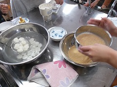 感謝の気持ちを伝えた後は,収穫したお米でおにぎりを作りました。