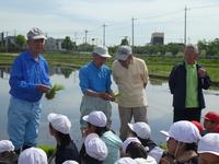 5月9日(木)野田いきいきクラブの皆さんに教わりながら毎年みずき小学校で恒例となっている田植え体験学習を行いました。